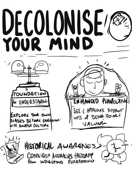 We believe this conundrum can be avoided by “decolonizing your mind” before seeking to understand those cultures deeply negatively altered by colonization. Requiring settler-colonizers and other non-Indigenous Australian’s to develop an awareness of the ongoing influence of the